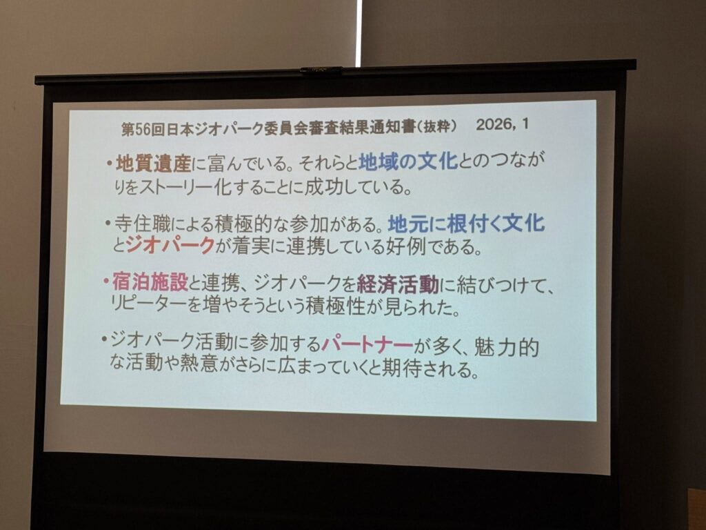 勉強会では、案内する相手に合わせて情報の濃度を調整する「ジオ加減(塩加減)」という考え方が示されました。地質学的な専門用語を羅列するのではなく、地域の歴史や信仰、産業と結びつけて解説する手法です。