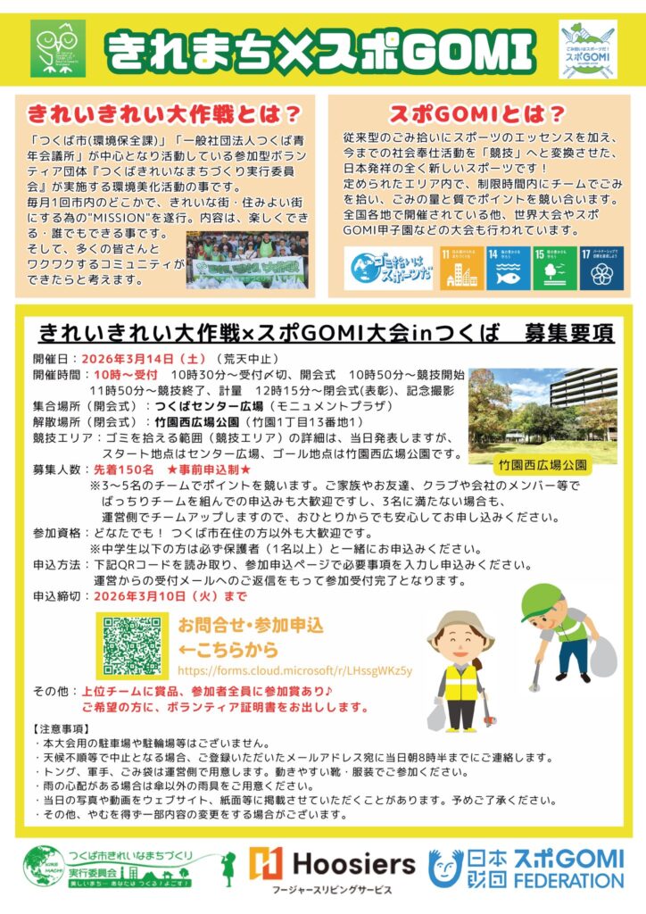 つくばの街をきれいにする「きれいきれい大作戦」と、日本発祥のチームスポーツ「スポGOMI」がコラボした特別大会が開催されます!