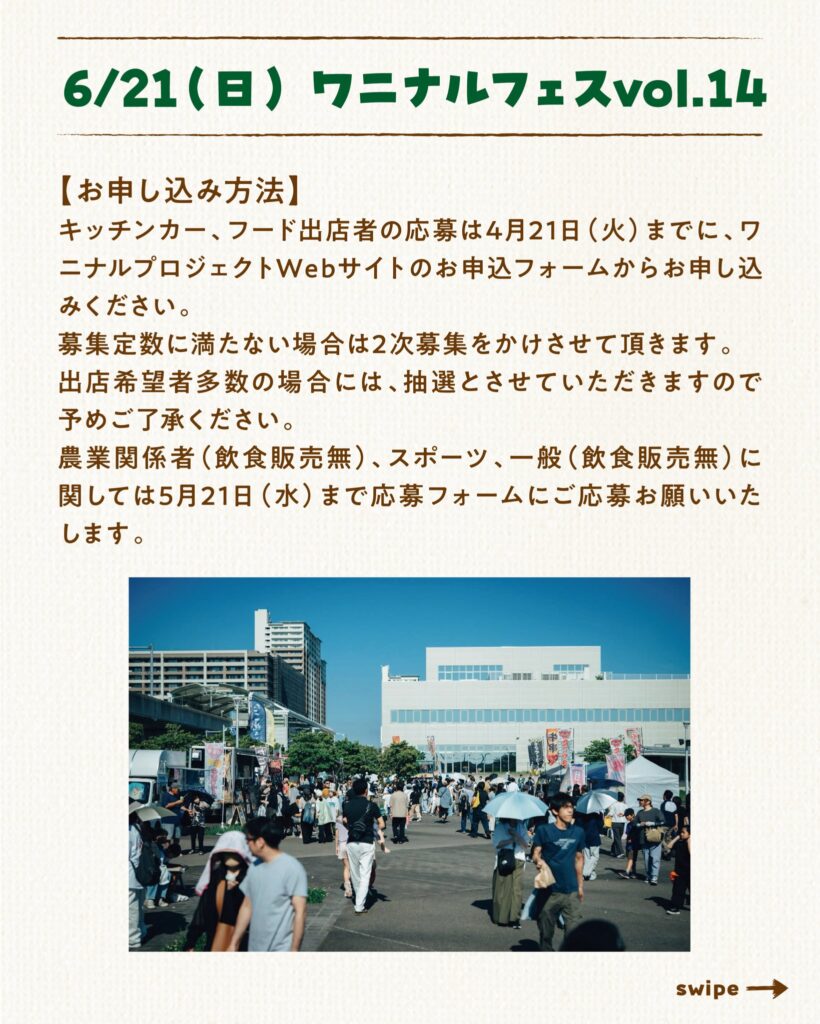 ワニナルフェス vol.14 6月21日開催 出店募集中!