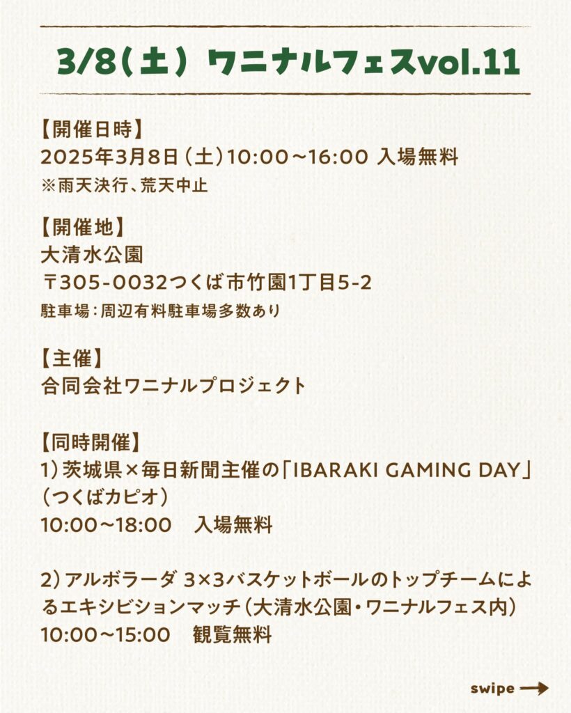 ワニナルフェスVol.11を3月8日㈯に大清水公園で開催します!