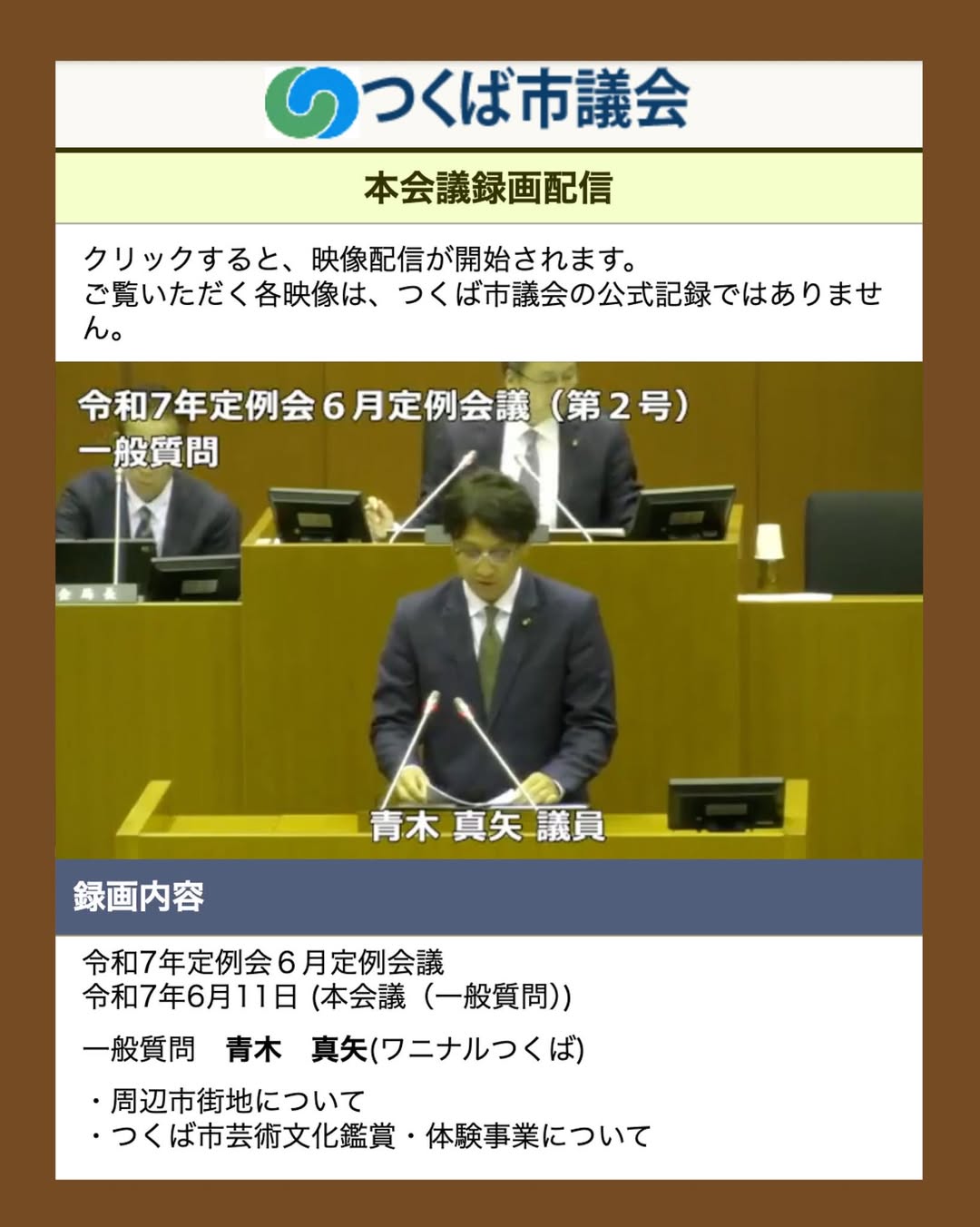 録画は、つくば市議会公式ホームページよりご覧いただけます↓