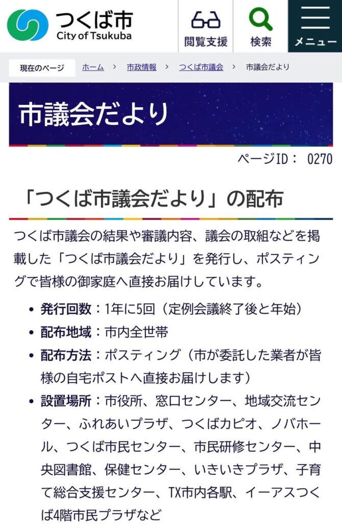 『つくば市議会だよりの配布』