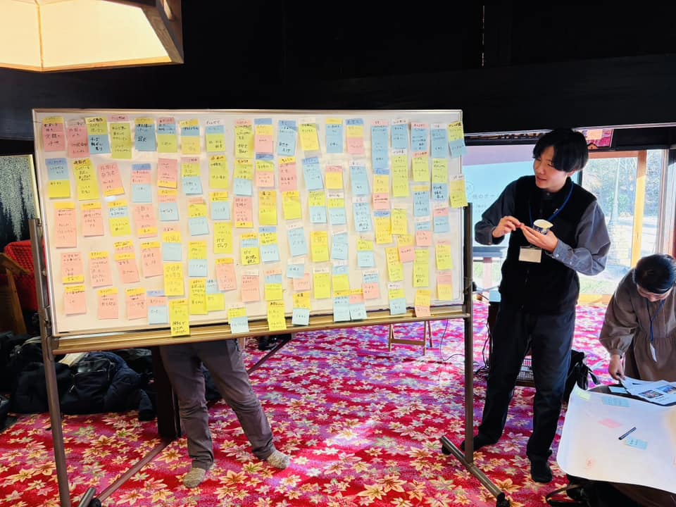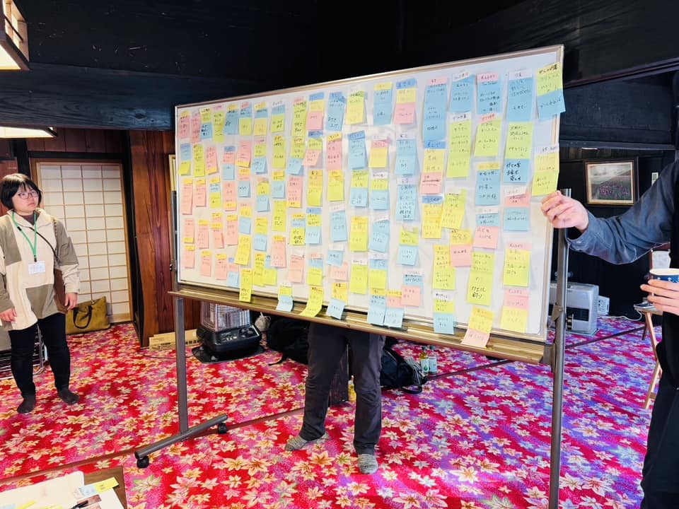 このワークショップでは、筑波山ガマランドの活用方法を考えながら、アイデア発想の手法を学びました。会場は筑波山の麓にある古民家『美六山荘』。落ち着いた雰囲気の中で、参加者同士の意見が活発に飛び交い、100個ものアイデアを生み出すことができました。