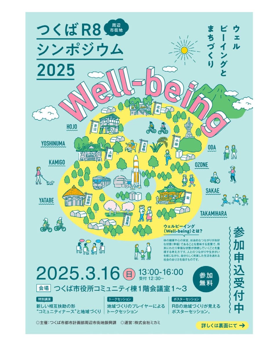 3月16日(日)13時から、つくば市周辺市街地振興課 主催の「つくばR8シンポジウム2025」が、つくば市役所コミュニティ棟で開催されます。