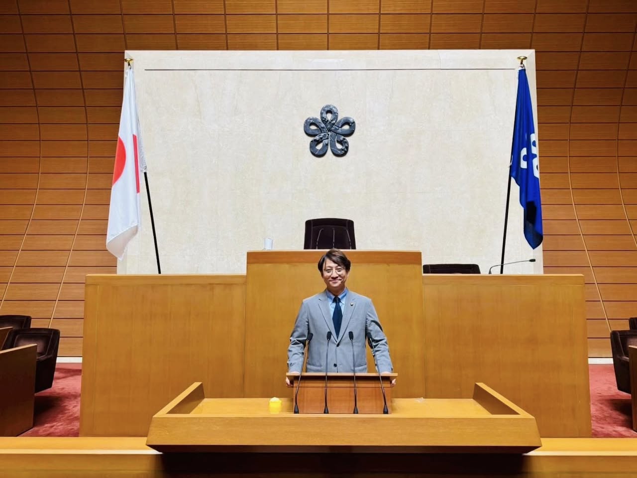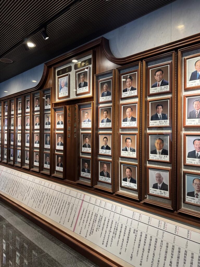 勉強会後には、福岡県議会の議場も案内していただき、広域自治体ならではの議会運営や行政のスケール感を体感することができました。