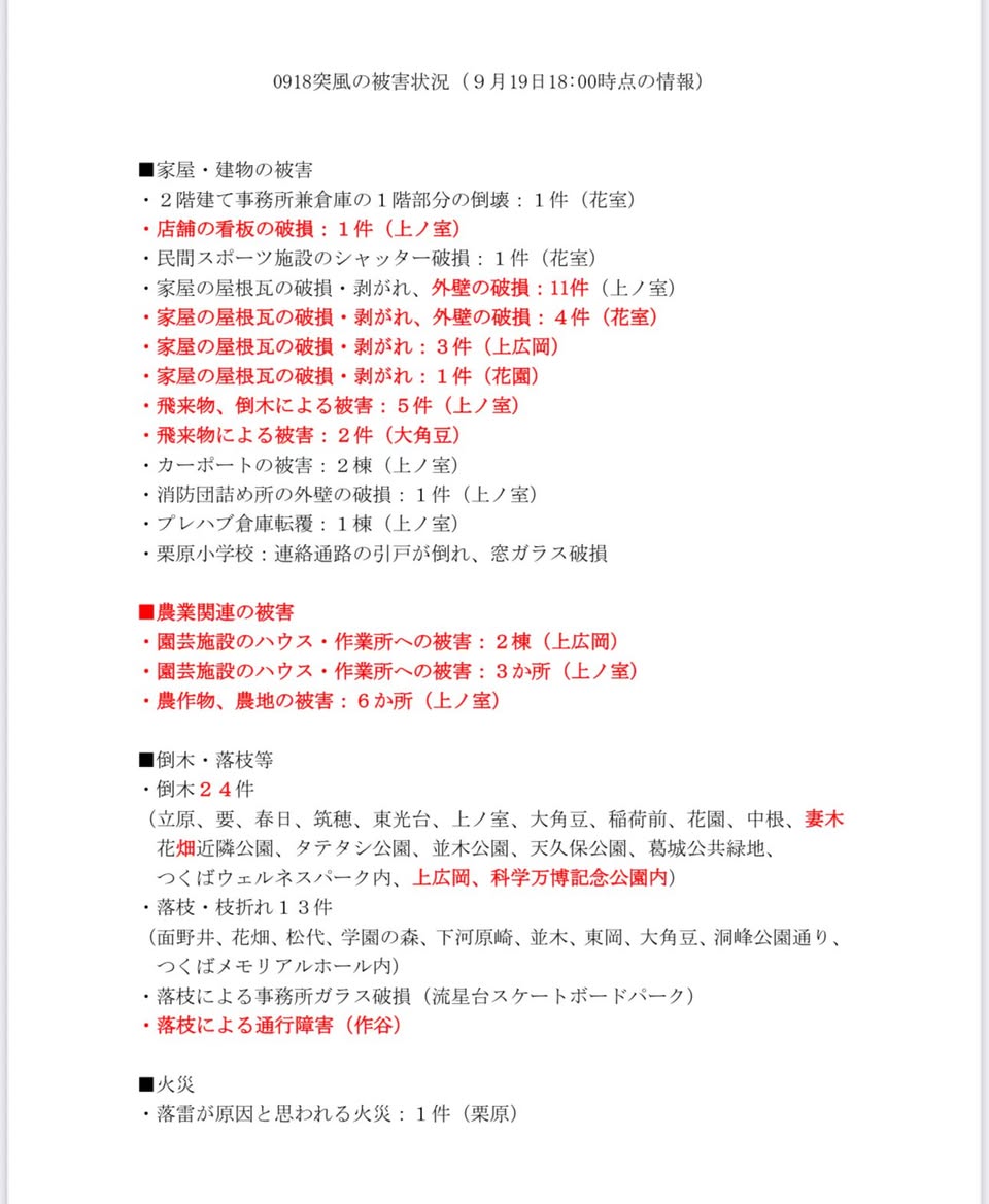 令和7年9月18日(木)の突風による被害状況についてお知らせします。