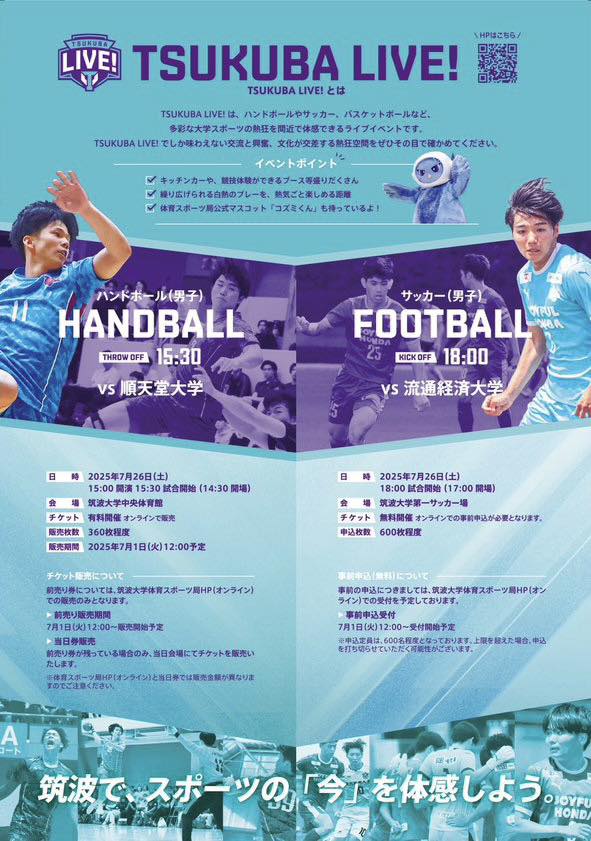これにあわせて、筑波大学体育スポーツ局主催の筑波大学ホームゲーム「TSUKUBA LIVE!」も実施されます。