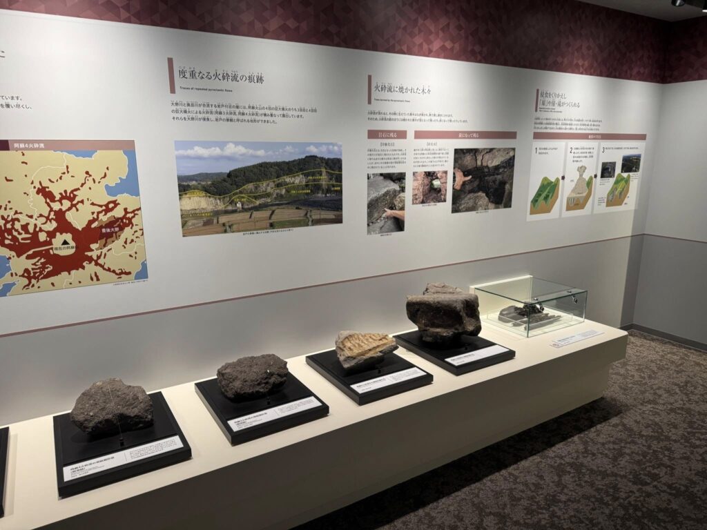 この施設は図書館と一体化した複合施設で、「おおいた豊後大野ジオパーク」の拠点として、地域の自然・歴史・文化を総合的に学べる場として整備されています。約9万年前の阿蘇火山の巨大噴火から始まる地質の成り立ちを軸に、災害の歴史、地域の暮らし、文化の発展までをわかりやすく紹介しており、プロジェクションマッピングや立体模型など、体験的・視覚的に楽しめる展示が充実していました。