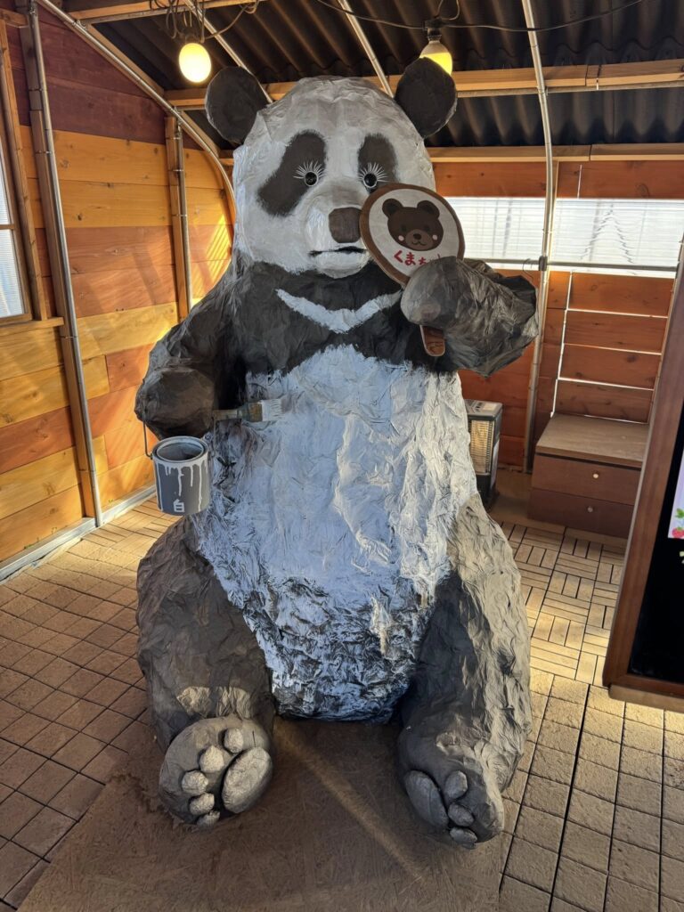 さらに驚くべきは、自動販売機の横に展示された巨大な「ツキノワグマ」の作品。