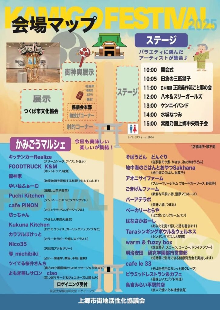 10月18日(土)10:00〜15:30、つくば市上郷 金村別雷神社にて「KAMIGO FESTIVAL 2025」が開催されます。